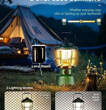 LED Camping Lantern, 2500LM Dimmable Vintage Rechargeable Lantern, Water Resistant Portable Emergency Lights for Camping, Home Power Outage, Hurricane, Hiking