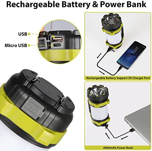 – **Rechargeable & Eco-Friendly:** Equipped with a robust **4000mAh power bank**, our camping lanterns can be conveniently recharged via USB, eliminating the need for disposable batteries. Keep your lantern charged and ready to go, while also minimizing your environmental impact.
